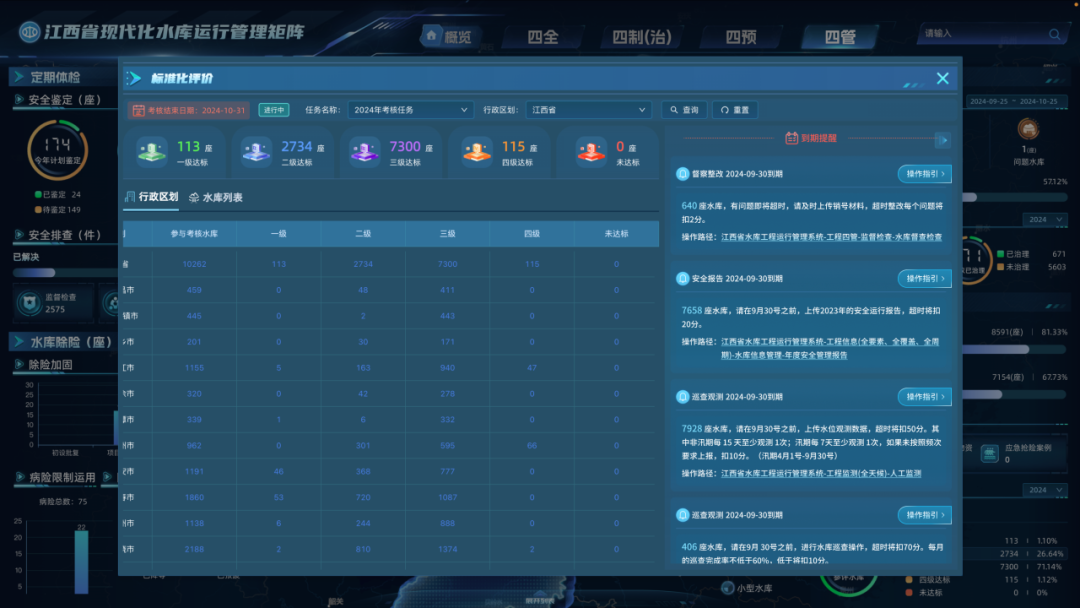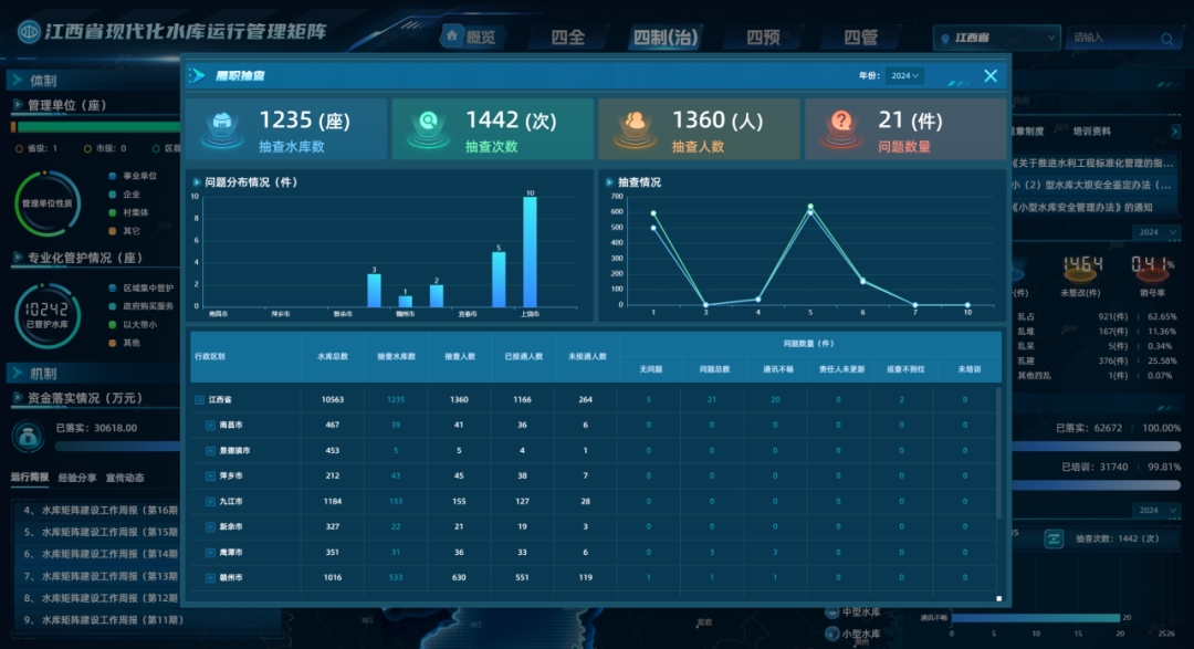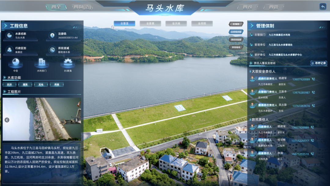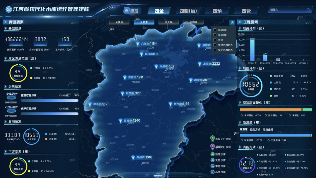 江西省高度醉心当代化水库启动不停矩阵缔造,严格落实水利部联系要求,以当代化矩阵缔造为要紧检阅抓手,牢牢围绕“四全、四制(治)、四预、四管”实行旅途,明确建议全省当代化水库启动不停矩阵先行先试“千库树标,万库提质”办法,即:因地制宜,包括44座试点水库在内,11个先行先试区域内的千余座水库在水库不停新期间新斥地应用、急流风险预警、溃坝风险预演、数字孪生缔造等方面标杆引颈;统筹鼓吹,全省万余座水库在尺度化不停、专科化管护、库区与安全不停方面已毕提质增效。同期,按照省级斡旋尺度化缔造、市县区域细巧化不停、试点水库个性化定制的模式,分层级分区域初步构建“江西省当代化水库启动不停矩阵平台”,不同层级平台框架斡旋、数据互通、责任协同、模子共用、预警联动,初步已毕了水库运管矩阵平台功能全袒护。通过全面鼓吹当代化水库启动不停矩阵缔造,有用擢升水库启动不停细巧化、信息化、当代化水平。