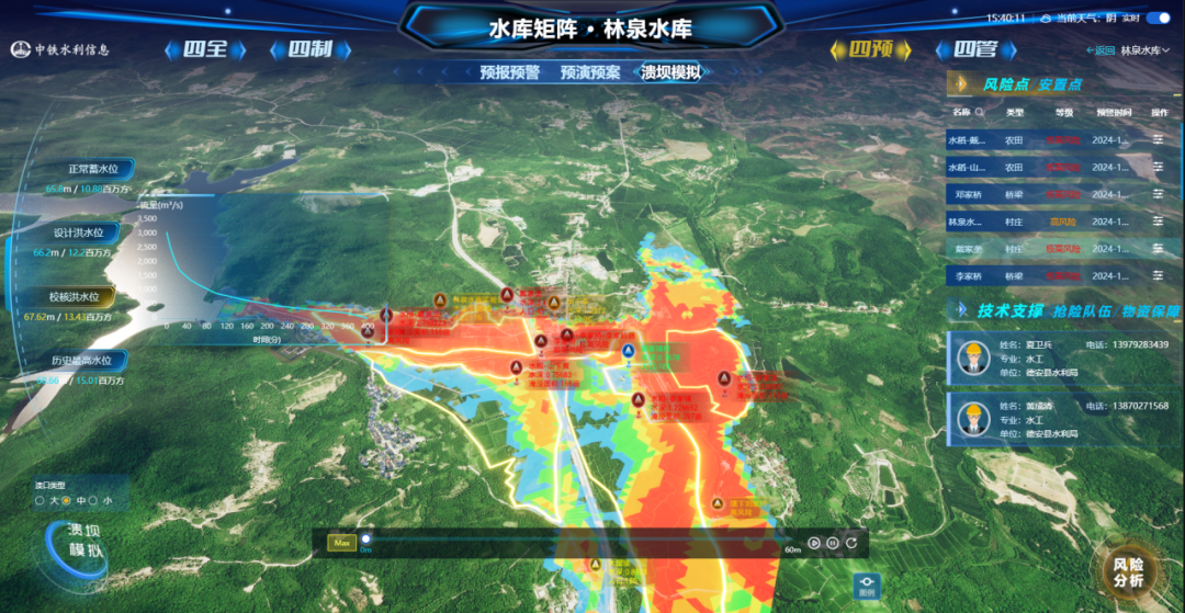 要点鼓吹水库急流风险数字化预演。林泉等水库针对溃坝等顶点情况,建树溃坝急流演进模子,计较溃坝急流到达下贱各河段的峰值流量、水位、流速等,动态分析急流影响限制、东谈主员受灾和社会经济受损进程,为东谈主员提前转念、亏蚀提前估算提供有策画依据。峡江水利要害已毕不同工况下急流正向预演,引入粒子群寻优算法已毕逆向推演大坝约束行使条目与限泄要求。